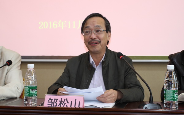 副校长邹松山传达了省教育厅转发的中共教育部党组《关于深入学习宣传以习近平同志为总书记的党中央治国理政新理念新思想新战略的通知》精神