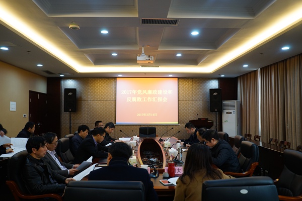 图为校党委书记唐瑾对我校党风廉政建设工作进行全面汇报