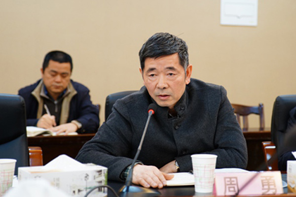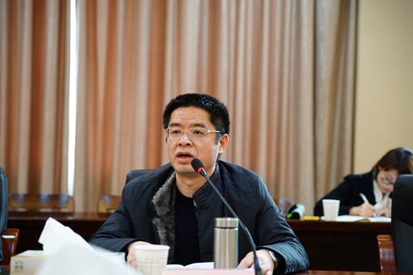 图为校纪委书记周勇对我校纪检工作情况进行汇报