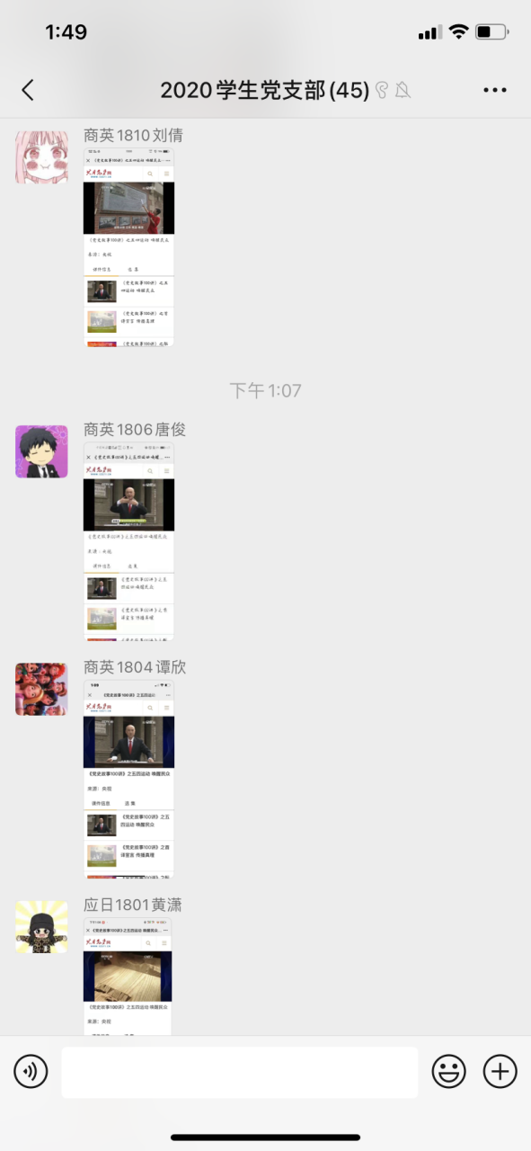 随后通过组织线上观看党史故事视频,进一步深入进行党史学习。大家在微信群分享学习记录和心得体会。