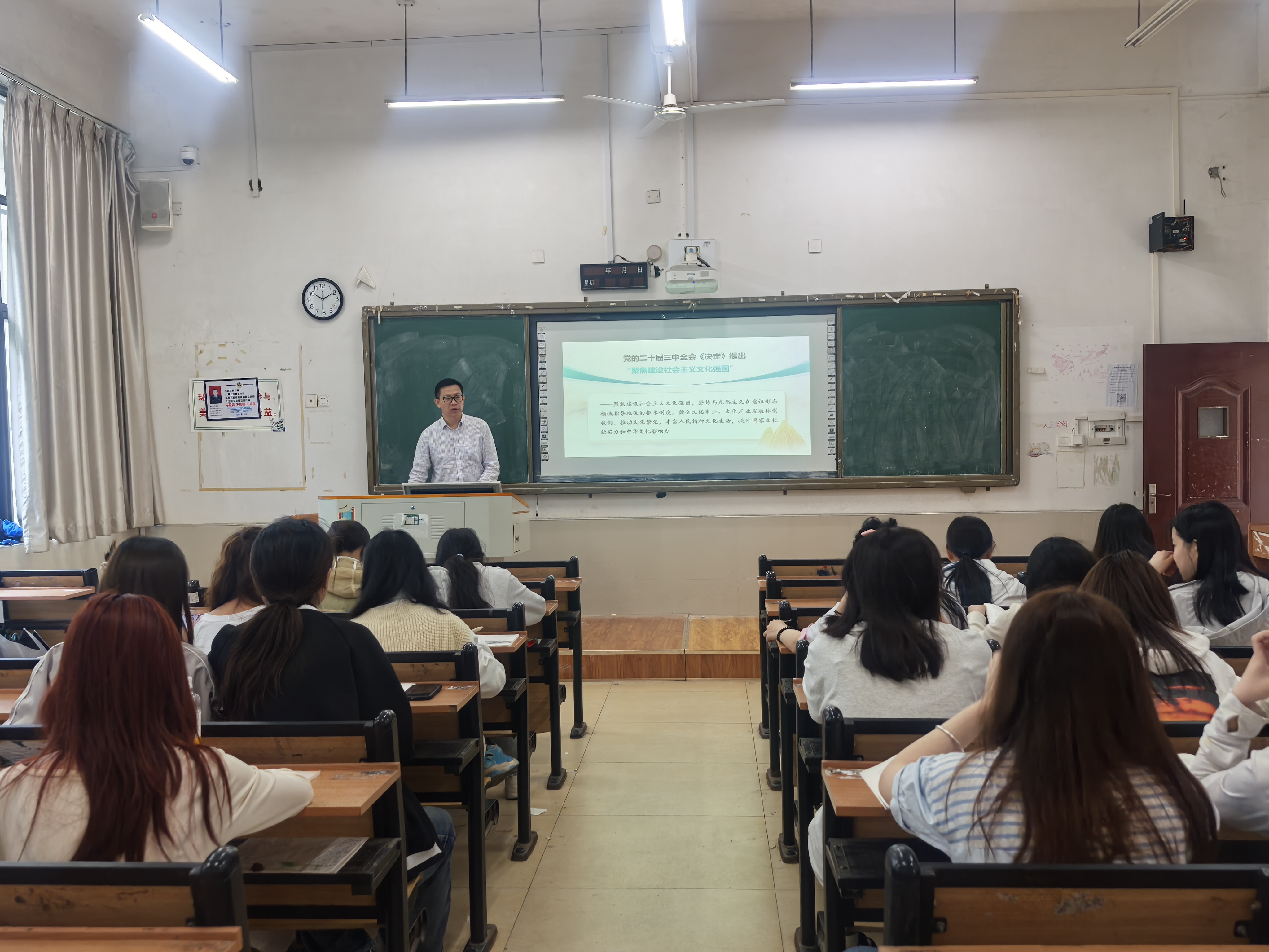 2025年4月28日上午,求知中楼113教室气氛热烈,我校党委书记唐瑾教授走上讲台,为国际商务学院国贸2405班的同学们带来了一堂深刻而生动的“形势与政策”课,专题讲授《加快建成社会主义文化强国》。