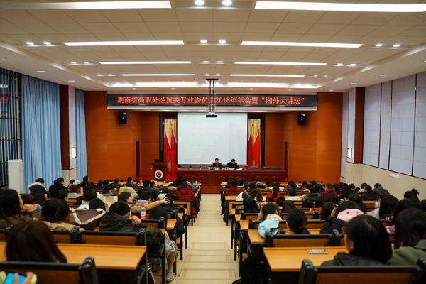 2018年12月7日是24节气中的大雪,瑞雪将至,预兆丰年,在这个特殊的日子里,湖南省职成学会高职外经贸专委会2018年年会在湖南外贸职业学院顺利召开。来自长沙民政职业技术学院、湖南商务职业技术学院、湖南汽车工程职业学院、湖南工程职业技术学院、湖南机电职业技术学院、湖南生物机电职业技术学院、湖南都市职业学院、湖南外国语职业学院等省内多所外经贸高职院校委员单位和中国出口信用保险公司湖南分公司、汇知思行教育科技有限公司、湖南富冠信息技术股份有限公司、北京慧睿国际技术发展有限公司、湖南奥弘信息科技有限公司、国家行政学院出版社等多家外经贸相关企业参加了这次大会,会议代表40人。