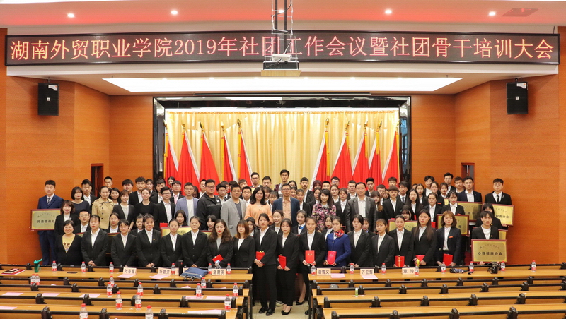 会议伊始,全体起立奏唱国歌。会上由校团委副书记许杏同志介绍了学生社联和社团的基本情况,铁明太同志宣读《关于聘任湖南外贸职业学院2019-2020学年学生社团指导老师和社长的决定》,紧接着由唐瑾同志、铁明太同志、叶宏同志分别为校级社团授牌,为指导老师颁发聘书,为社长颁发聘书。随后社长代表和社团指导老师代表依次上台发言,分别表示:为打造我校学生社团品牌,营造积极和谐的学生社团文化氛围,努力贡献出自己的一份力量。