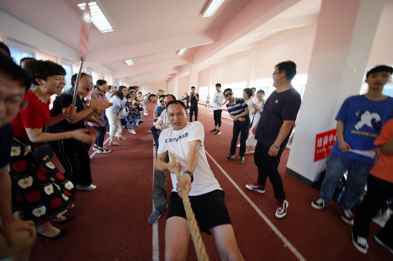 5月28日下午,我校2019年教职工拔河比赛火热开场。本次拔河比赛以工会小组为单位,全校各部门组成8支队伍参赛,每支参赛队员为15名,其中男职工5名。各分管校领导也来到了比赛现场,为参赛队员呐喊助威。