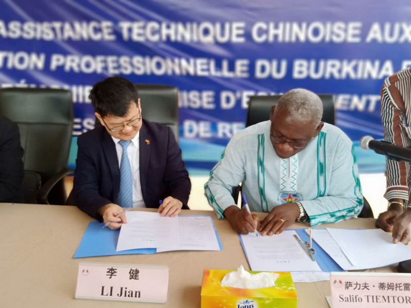 当地时间7月2日上午9时,中华人民共和国援布基纳法索职业培训中心技术物资和零配件交接仪式在布基纳法索瓦加杜古培训中心举行。中国驻布基纳法索使馆李健大使、布基纳法索青年与青年创业促进部部长蒂姆托雷、援布职教组全体成员、当地政府官员、各媒体记者、各培训中心校长及代表、培训中心学生参加此次交接仪式。本次物资交接是由湖南外贸职业学院、湖南省商务厅职业培训中心承办的援布基纳法索职业培训中心技术援助项目的重要任务之一。