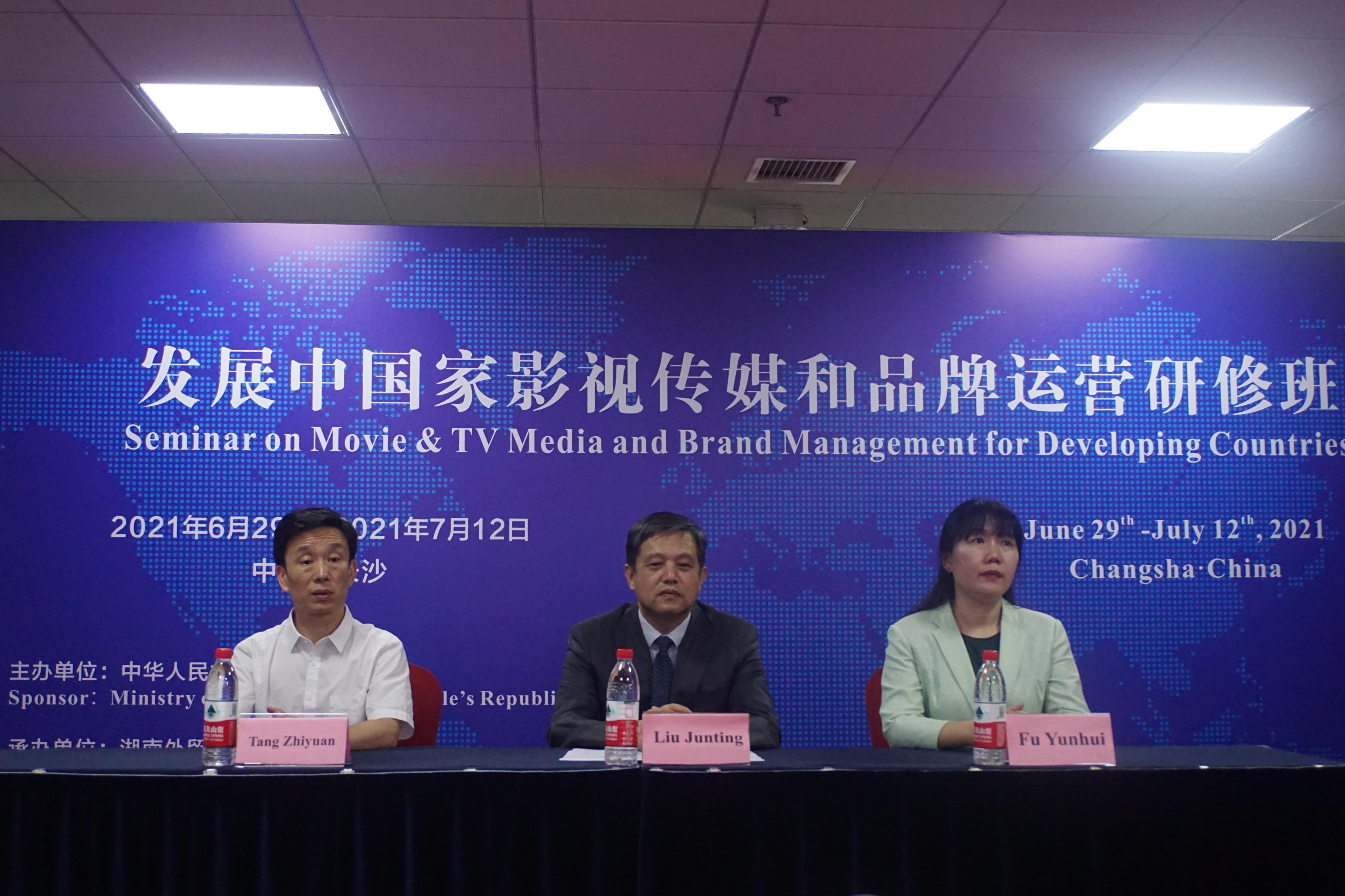 2021年6月29日,由中华人民共和国商务部主办,我校承办、湖南广播影视集团协办的“发展中国家影视传媒与品牌运营研修班(在线)”开班仪式在我校学术交流中心举办。湖南省商务厅对外投资和经济合作处调研员刘军廷先生、我校援外培训学院院长唐智远出席了会议,并发表重要讲话。我校援外培训学院副院长傅云辉主持会议,来自埃塞俄比亚、斯里兰卡、苏丹、肯尼亚的36名学员通过腾讯国际视频会议系统Voovmeeting在线参与了研修班开班仪式。