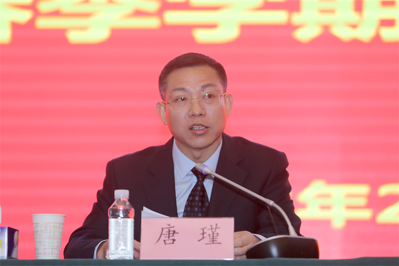 党委书记唐瑾向大家致以诚挚的新年问候,代表学校党委向全体与会人员和假期坚守岗位,为学校建设发展做出贡献的同志表示衷心的感谢,并就学年工作提出了总体要求。一要科学研判,审时度势,充分把握学校发展面临的新形势。紧紧抓住全国高职教育扩大发展格局和空间的机遇,积极参与全省“楚怡行动计划”,锚定目标,占据一席之地。对标高职本科院校本科专业的技术指标,狠练内功,做出成绩。二要明确目标任务,勇于改革创新,不断开创学校高质量发展的新局面。新的一年学校的目标任务,总的来说就是“1349”,即追求一个核心目标,围绕三个主题,实现四个突破,突出九项重点工作。全体教职工要解放思想,改革创新,对制约学校高质量发展的诸多问题,认真排查、列出清单,精准把脉、对症下药,着力解决。三要真抓实干,落实当先,确保目标任务圆满完成。弘扬伟大的建党精神和“开明开放、敢作敢为、成人成己、自信自强”的商务文化,尽快收身收心,立说立行,善作善成,在推进学校高质量发展的新征程上奋勇前进。四要坚定初心使命,从严治党管党,营造风清气正的政治生态。全校上下要增强“四个意识”、坚定“四个自信”、做到“两个维护”,不断提高政治站位,突出政治建设。加强干部队伍建设,积极营造团结干事的良好氛围,着力建设清廉高校,系统落实学校全面从严治党的各项举措。