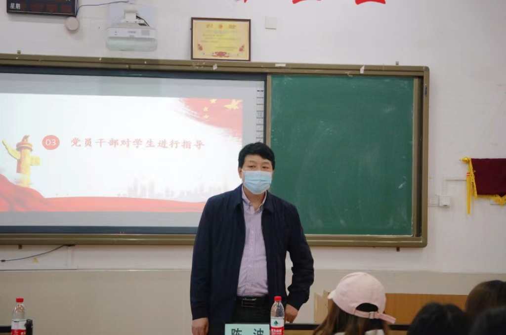 本网讯(商务外语学院 戴璐)为进一步加强我校疫情常态化防控,充分发挥党组织和党员干部的积极作用,深入基层联系学生,确保学院安全稳定,4月14日下午1点,湖南外贸职业学院校长陈波深入联系班级,在求知中楼105开展商务外语学院应韩2101班疫情防控常态化下党员干部深入基层联系学生工作会议,参加本次会议的还有商务外语学院党总支书记潘雪义、党总支副书记丁丽莉、团总支书记罗芬及组织员肖璐,会议由应韩2101班辅导员戴璐老师主持。