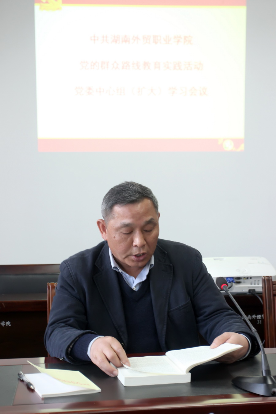图为:党委中心组(扩大)学习会议现场(2) 3月17日上午,我校在实训楼一楼会议室召开党的群众路线教育实践活动党委中心组(扩大)学习会议,参会人员为学院全体副处以上干部。 学校党委书记屈孝初在会上讲话并就学习活动作了动员部署。他说,此次集中学习的目的在于统一时间、统一地点、统一认识、形成氛围、熟悉内容、提高实效;学习形式上做到“听、记、读、看、议、思”。他强调全体党员干部要以高度的政治责任感对待学习活动,要求全体人员在学习活动中做到“六不”和“六要”。“六不”:不迟到、不早退、不无故缺席、不抽烟、不接打手机,不交头接耳;“六要”:要认真听、要重点记、要全部读、要仔细看、要用心思考、要全面领会。 此次集中学习时间为3月17日-19日,为期3天。 |