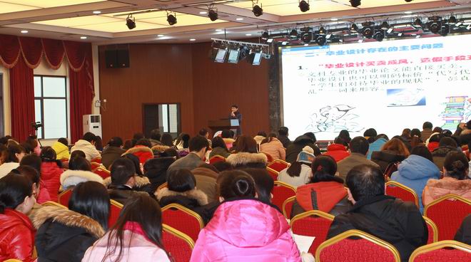 姚和芳教授《毕业设计管理及指导》的专题讲座,紧扣湖南省教育厅《关于开展高等职业院校学生毕业设计抽查的通知》(湘教通〔2014〕213号)文件精神,结合其本人历年指导学生毕业设计的生动案例,从毕业设计的目的、毕业设计存在的问题、毕业设计的管理、毕业设计的指导、毕业设计指导达成的目的这五大方面,精辟到位的给全体与会人员做了专业性的指导。