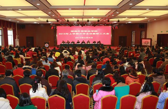 3月6日上午9点,学院在学术交流中心多功能厅召开2015年上学期开学全体教职工大会,学院党委书记屈孝初作重要讲话,院长唐瑾作工作报告,在家院领导出席并在主席台就坐,全体教职工参加了会议,会议由党委副书记李先维主持。