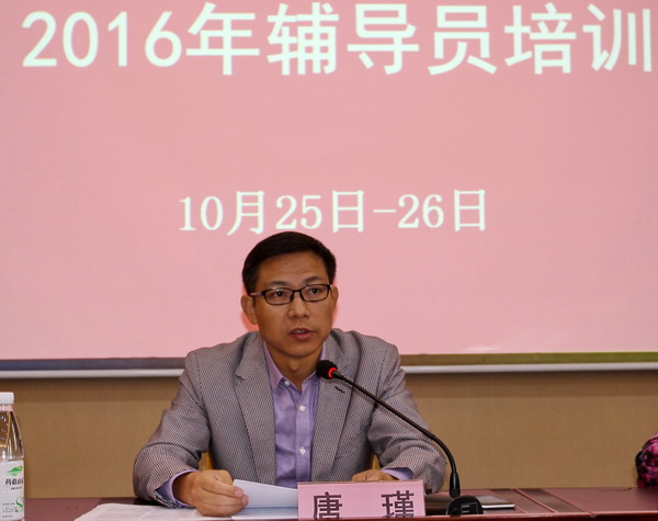 校长唐瑾教授首先做了专题讲话。唐校长对辅导员工作给予了充分肯定,指出要通过培训提高辅导员综合素质与职业能力,完善相关机制,进一步稳定、强化辅导员队伍。并对学生工作提出了要求:一是要充分把握复杂多变的社会环境对大学生成长带来的困难与挑战;二是要充分正视学生工作自身存在的短板与不足,强化日常管理,加强学风建设;三是学校、职能部门、二级学院要重视并进一步加强辅导员队伍建设。同时,唐校长就如何做好一个辅导员谈了几点看法,他指出辅导员要进一步提高思想认识,调整角色,提升综合素质,掌握工作方式方法,具备责任心、细心、耐心、爱心。