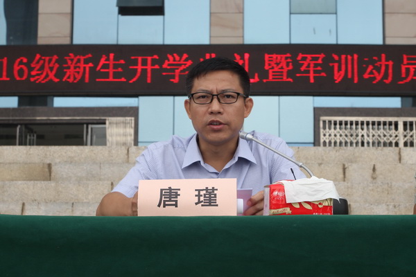 唐瑾校长为开学典礼致辞,唐校长代表学校党委、行政及全体教职工欢迎新同学的到来。并向新同学提出了五点希望:一是准确定位,脚踏实地,勤奋好学;二是投身新环境,适应新事物,开始新征程;三是培养创新意识,塑造创造精神;四是吃苦耐劳磨炼意志,注重实践提高技能;五是正确对待军事训练,掌握基本军事技能。唐校长激励同学们扬起理想的风帆,以一往无前的气概乘风破浪,去创造属于自己的辉煌。