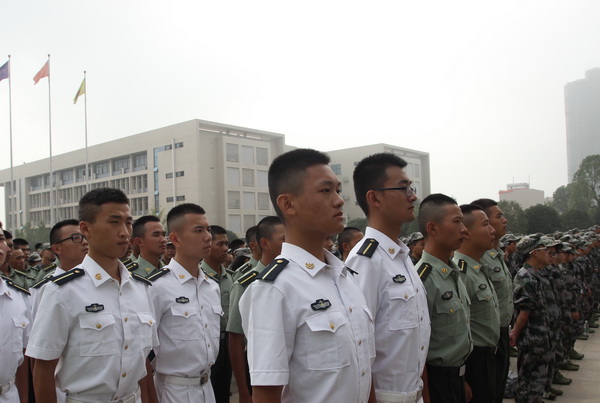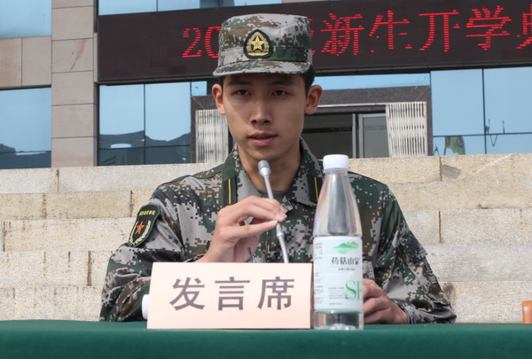 最后,军训首长彭朋同志做军训动员讲话,激励2016级新生从思想上高度重视并全身心的投入到军训中。