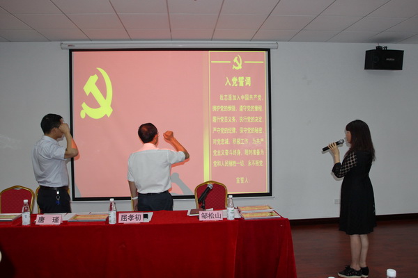 会上,邹松山宣读了我校2016年上半年发展的新党员名单,副校长铁明太领誓,新党员举行了入党宣誓仪式,老党员共同重温了入党誓词。