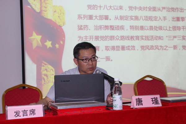 2016年7月1日,我校党委副书记、校长唐瑾给全体的党员上了一堂题为“以知促行,做‘四讲四有’合格党员”的主题党课,全体校领导出席、全校207名党员以及新发展的46名党员聆听党课,副校长邹松山主持。