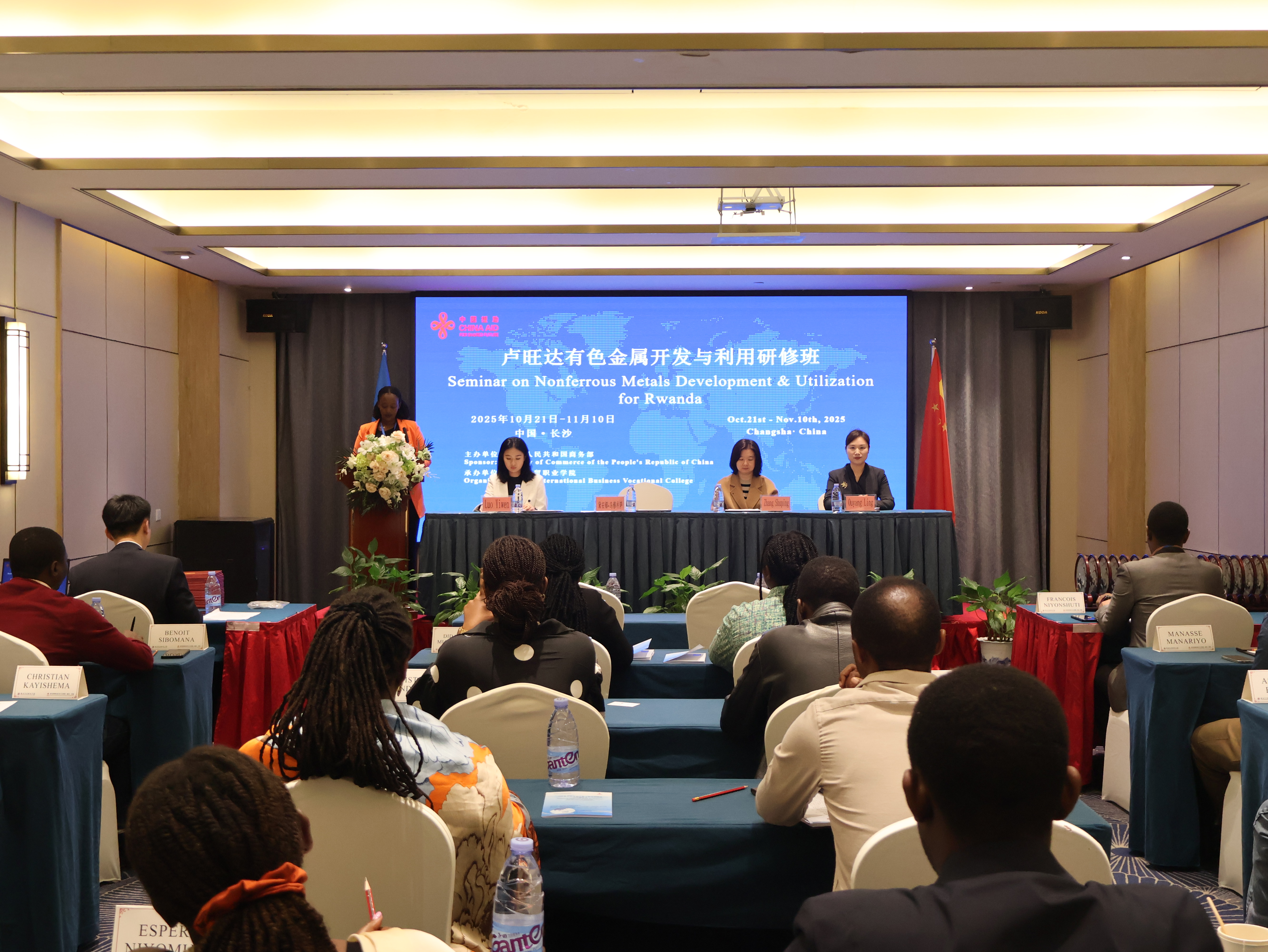 11月10日,卢旺达有色金属开发与利用研修班结业典礼在长沙举行。湖南省商务厅地区一处四级调研员张蜀平出席结业典礼并发表讲话,24位卢旺达矿业领域的官员和技术人员共同参与会议。