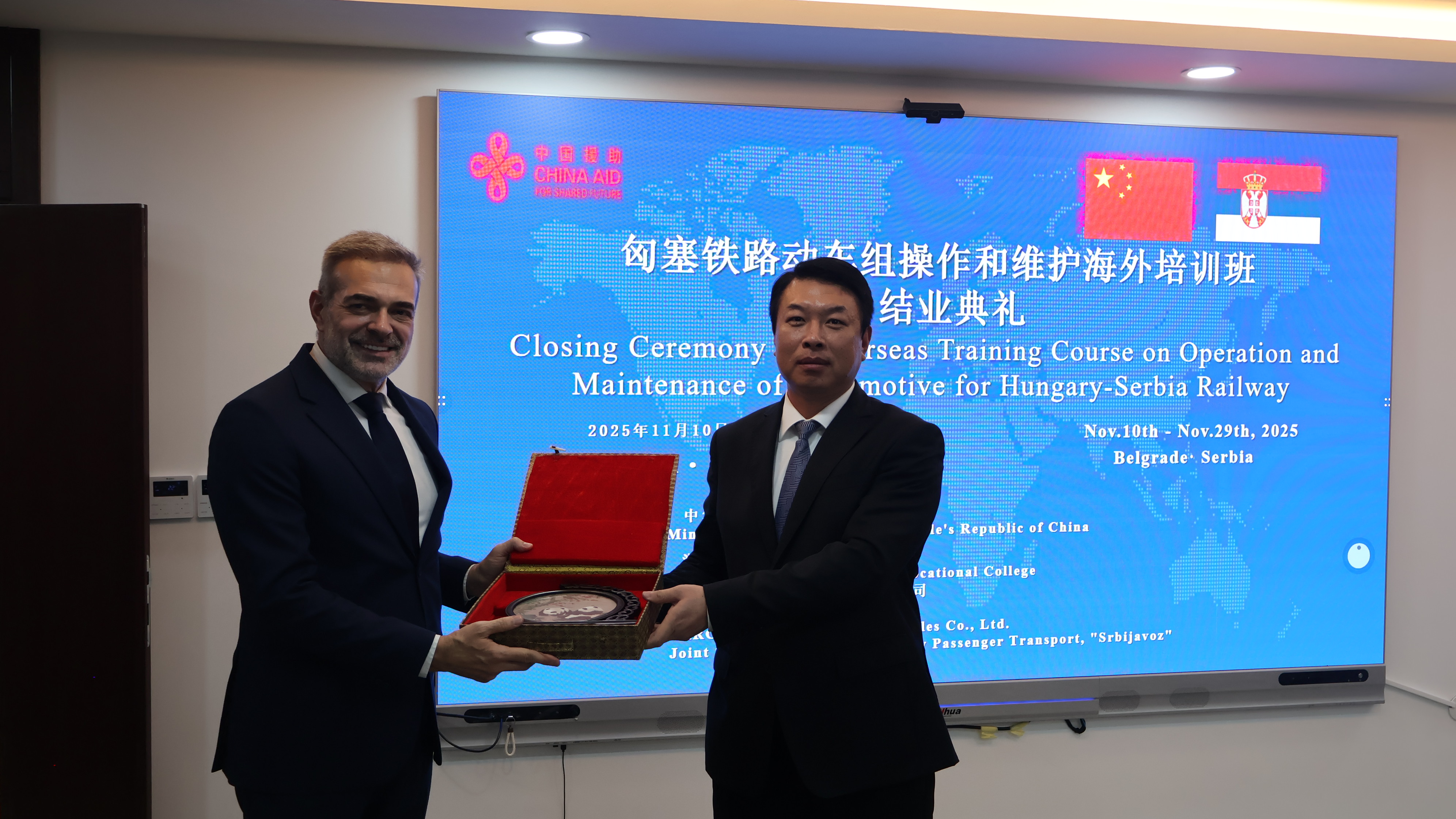 在向塞方赠送礼品、为学员代表颁发结业证书的庄重环节结束后,本次“匈塞铁路动车组操作和维护海外培训班”结业典礼在热烈的氛围中圆满落下帷幕。此次海外培训班不仅系统提升了塞方学员的专业能力,更深化了中塞在铁路技术、人才培养等领域的互学互鉴,为两国铁路合作筑牢根基。相信在双方的共同努力下,中塞铁路领域合作必将走深走实,为中塞友谊与“一带一路”建设持续注入新动能。