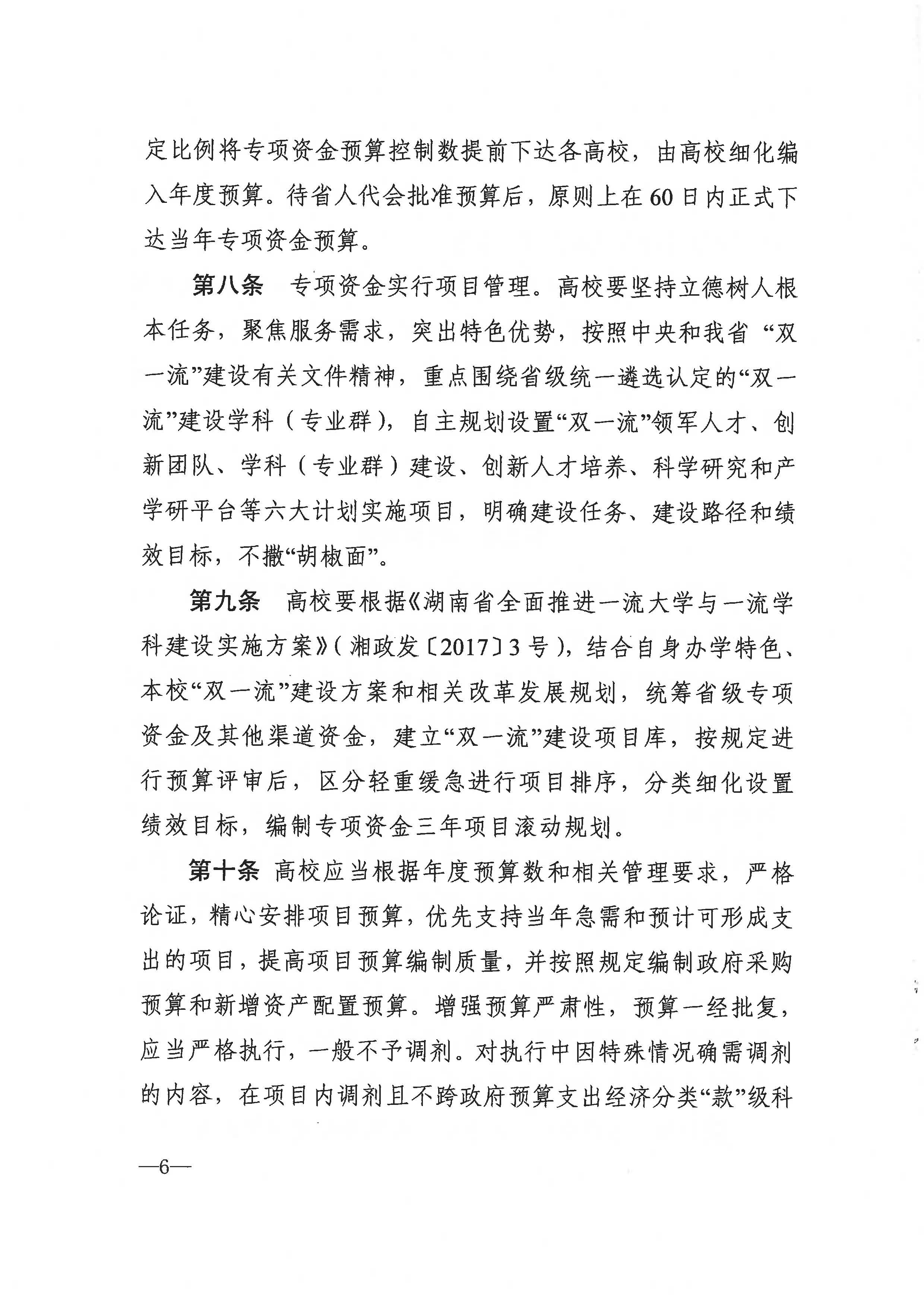 湖南省高校“双一流”建设专项资金管理办法(湘财教[2019]2号 )